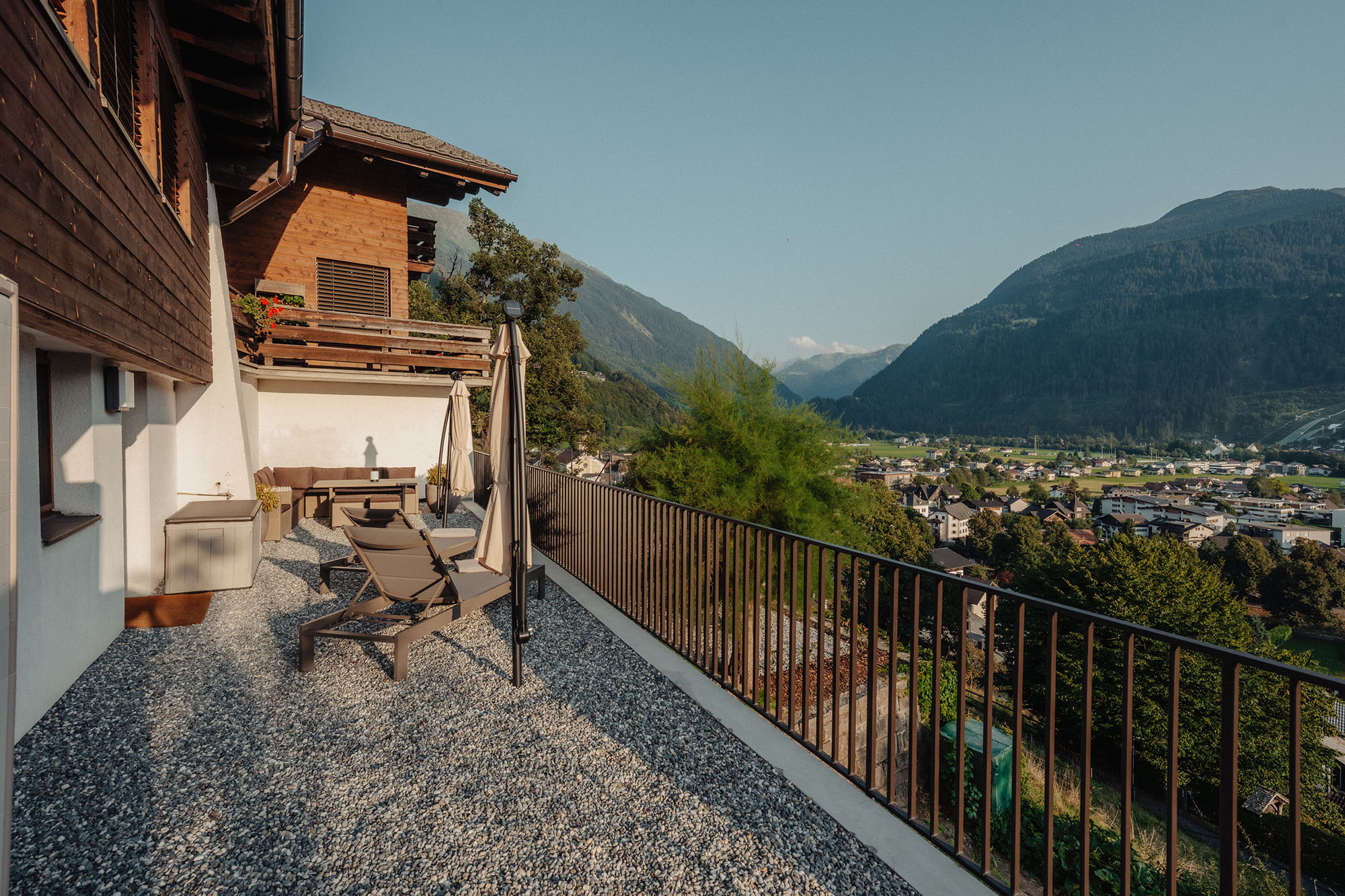 Urlaub im Montafon mit traumhaften Ausblick über den Dächern von Schruns.